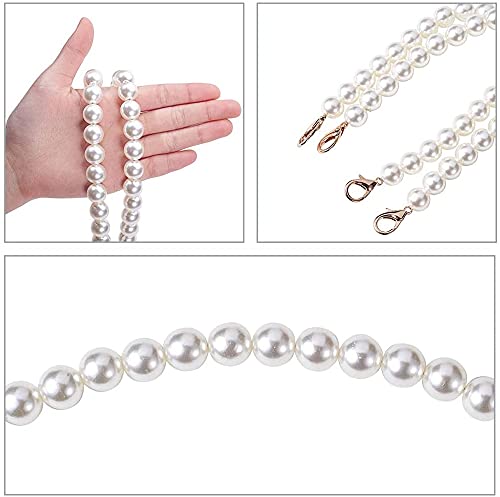 ANCLLO 3 pezzi fai da te perline rotonde di imitazione perle di ricambio, accessori per catene da borsa, manico corto di ricambio con fibbie in metallo, cintura a catena di perle (32 cm/12,6 pollici