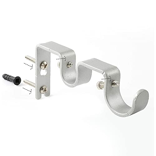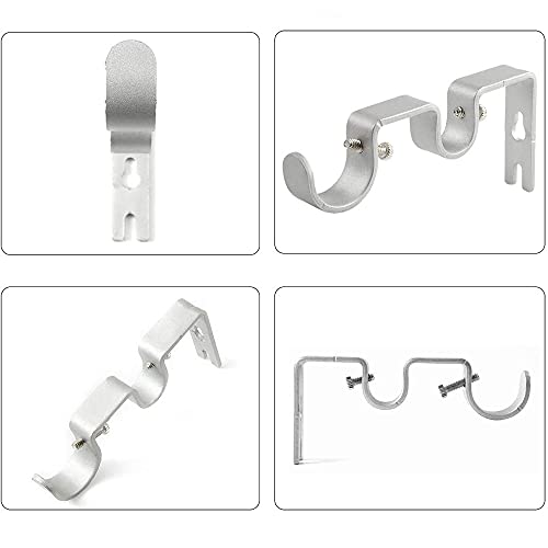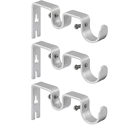 ANCLLO Staffe per aste per tende resistenti, doppie staffe per aste per tende, supporti doppi per asta da 2,5 cm e 1,5 cm (set da 3, argento)