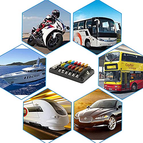 ANCORA Blocco fusibili a lama a 12 vie CON/bus negativo - Portafusibili LUMISKY ATC/ATO, indicatore di avvertenza LED e copertura antiumidità - Scatola fusibili a 12 circuiti DC 12-24V