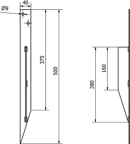 Dati tecnici: lunghezza totale 500 mm. Larghezza della linguetta laterale: 40 mm. Profondità di taglio: 500 mm. Spessore del materiale: 2,0 mm. Fori: 2 fori da 10,5 mm. Materiale: acciaio zincato a caldo. Peso: 0,65 kg