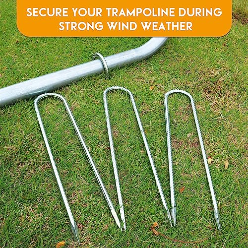 Mantieni il tuo trampolino in posizione: set di 8 pali in acciaio resistenti a forma di U e 1 gancio a T. Sono realizzati in acciaio zincato resistente alle intemperie, per anni di utilizzo. I pali a vento per trampolino sono utilizzati per evitare che il trampolino si capovolga o si muova durante l'uso.