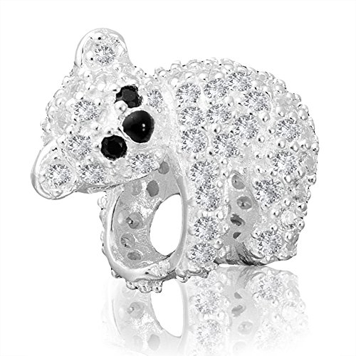 Questa bellissima perlina Bead a forma di kolala bianco è incastonata di zirconi preziosi CZ. Occhi e naso incastonati di zirconi neri Cubic. Lavorazione a mano molto accurata. Perlina luccicante color bianco tenue!