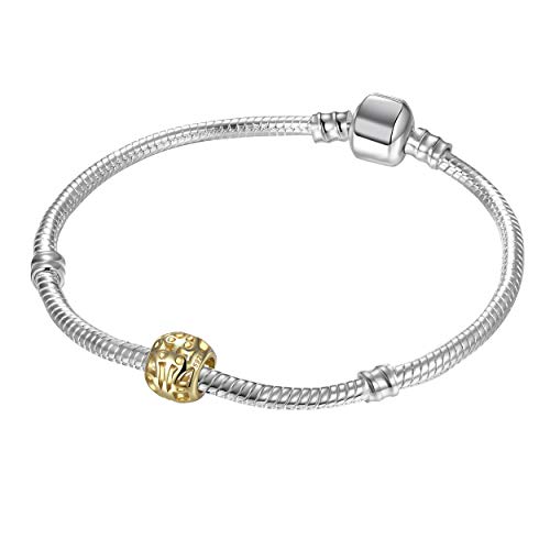 Andante-Stones Argento Massiccio 925 Originale Oro Perlina Bead Corona di Fiori Ciondolo da Donna Charm per bracciali e collane Europei + Sacchetto di Organza