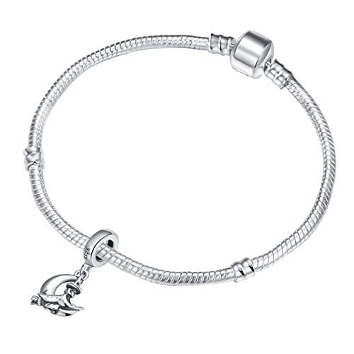 Andante-Stones, ciondolo a forma di strega sulla luna, in argento Sterling 925, con ciondolo a forma di strega sulla luna, elemento sfera per perline europee + sacchetto in organza.