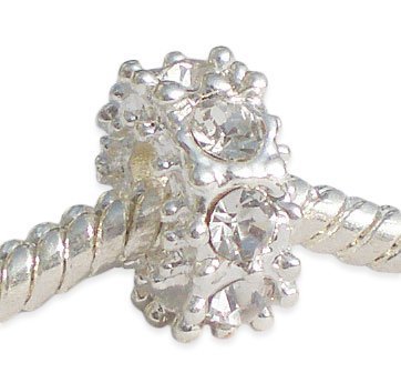 Andante-Stones Perlina Bead in argento 925 con 8 cristallini di vetro color bianco Elemento Pallina per perline European Beads + Sacchetto di organza
