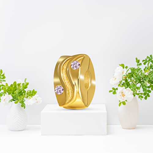 Andante-Stones 14K Perlina d'oro Clip Stopper zircone Color Rosa Ciondolo da Donna Charm Bead per bracciali Europei + Sacchetto di Organza