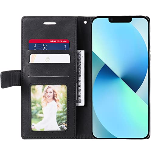 Andany Cover Compatibile con iPhone 13, 360 Protettiva Caso in PU Pelle Premium Portafoglio Custodia per iPhone 13, [Kickstand] [Slot per Schede] - Black