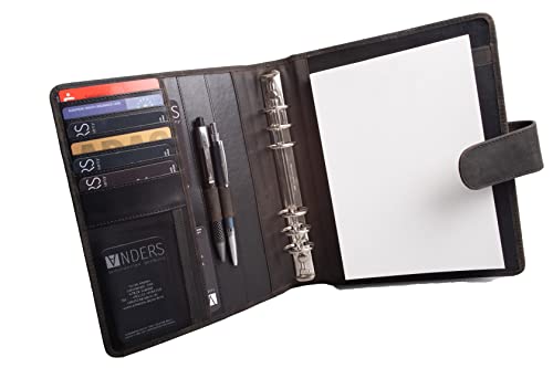Anders - Agenda in formato A5, organizer personale, raccoglitore ad anelli in pelle bovina, colore marrone