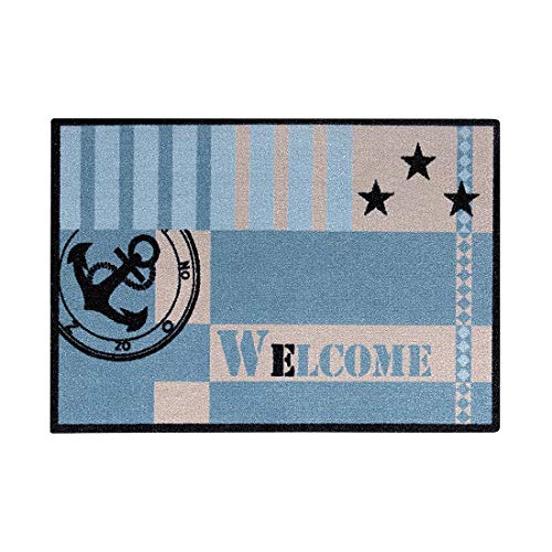 Andiamo Robusto zerbino Stampato, Poliammide, Blu, 39 x 58 cm