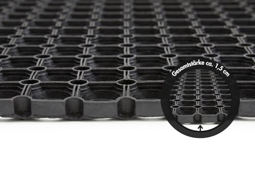 Andiamo Tappetino Zerbino Nido d'Ape con Anelli Aperti, Antiscivolo, in Gomma Morbida, Colore Nero, 60 x 80 cm