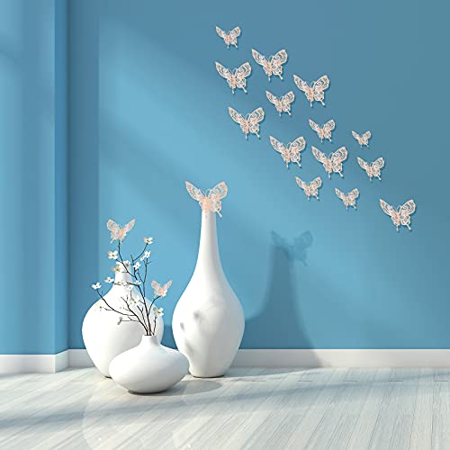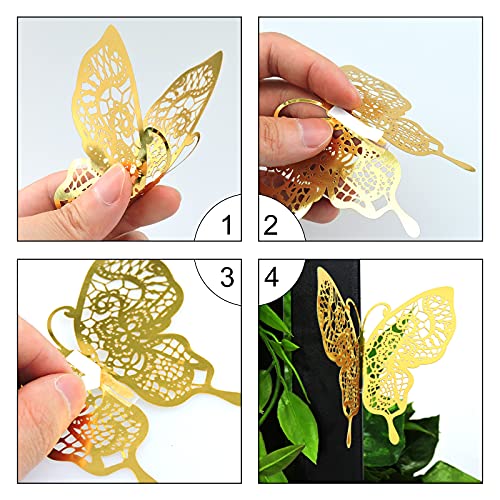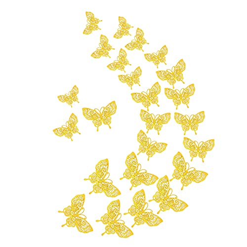 Andiker Adesivi Murali Farfalla 3D 24 Pezzi, Adesivi Murali Intagliati Metallici, Adesivi Murale Rimovibile per Decorazioni per Feste in Camera da Letto Matrimoni (d'oro)