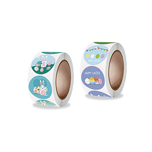 Andiker 1000 adesivi pasquali, 2 rotoli di etichette regalo con coniglietti pasquali, adesivi rotondi per decorazioni di Pasqua per artigianato o confezioni regalo