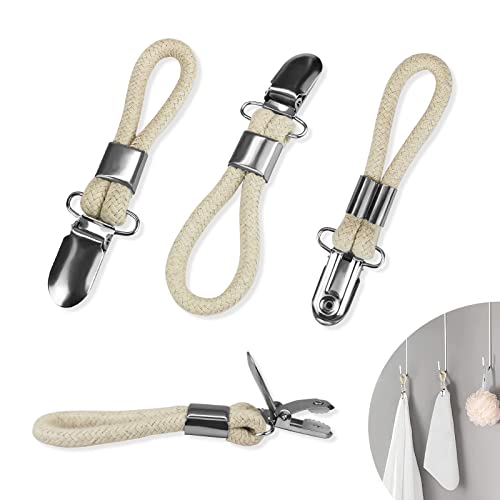 Andiker 4 clip per asciugamani, ganci per asciugamani, ganci per strofinacci con corda di cotone, clip per asciugamano da appendere, clip per bagno, cucina, balcone (a)