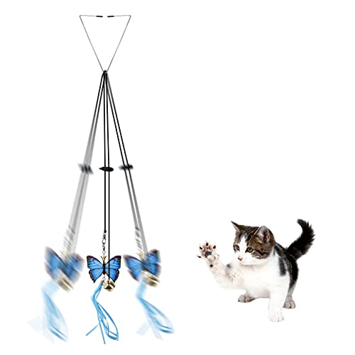 Andiker Bastone della Piume del Gatto, Giocattolo Interattivi della Bacchetta Farfalla porta sospesa con Corda da 150 cm, Cat Teaser e Ginnico per Gattini che Giocano al Chiuso