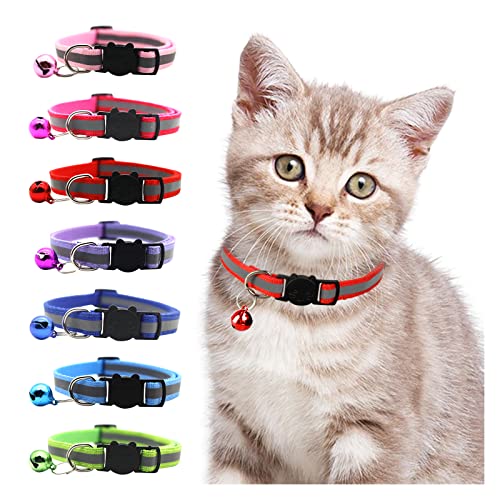 Andiker Collari per gatti a sgancio rapido, confezione da 7 con graziosi campanelli, targhetta identificativa e striscia riflettente, collare regolabile per animali domestici, collare di sicurezza