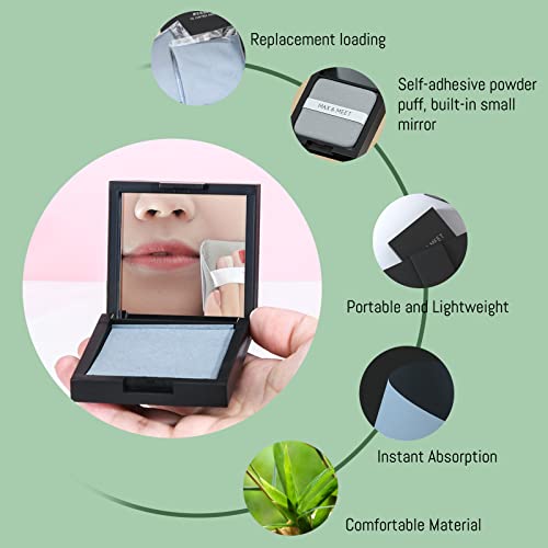 Andiker 200 fogli assorbenti per il viso, carta assorbente per pelli grasse con custodia a specchio e soffio di polvere autoadesivo, fogli assorbenti per il viso, per uomini e donne (1)