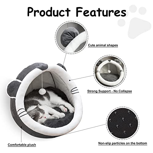 Andiker Letto per Gatti per Interni, 40 x 40 x 33 cm Letto in Peluche per Gatti con Nido per Gatti Semichiuso Lavabile Staccabile con Palla di Pelo per Regali di Gatti(grigio, topo)