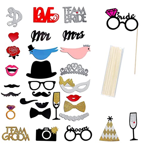 Andiker 31 pezzi Wedding Party Foto Booth Props für Vielfalt Party Geburtstag Hochzeiten, Photobooth Accessoires für Hochzeitsbilder Geburtstagsdeko Fotobox Accessoires (Type 1)