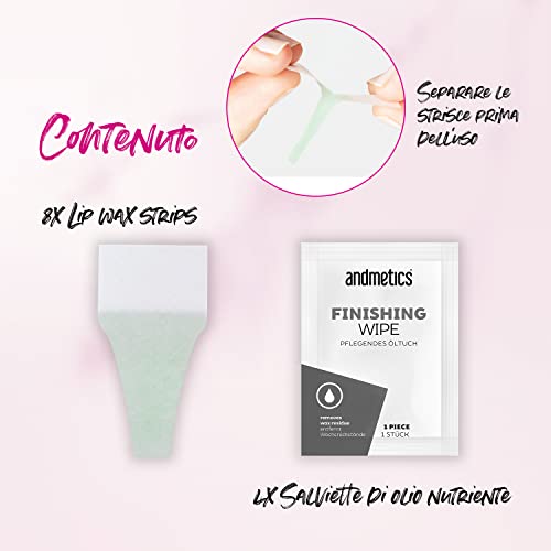 Andmetics LIP wax strips: labbra cera fredda depilazione strisce per il viso, forma perfetta per la crescita del labbro, senza irritare con cera calda.