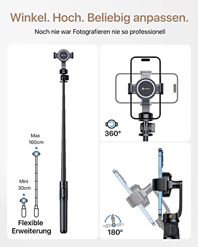 [Regolazione flessibile - Angolo di ripresa perfetto] MagStick è un treppiede per smartphone molto flessibile. L'asta può essere estesa da 30 cm a 160 cm per regolare l'altezza di ripresa, e la testa e il collo della clip possono essere ruotati per regolare l'angolo di ripresa. Troverai sempre l'altezza perfetta e l'angolo perfetto per scattare foto e video mozzafiato.