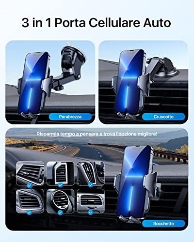 Andobil Porta Cellulare Auto [2023 Più Stabile e Robusto] 3 in 1 Supporto Telefono Auto Universale Ventosa/Cruscotto/Bocchette Porta Telefono Auto Girevole a 360°per iPhone 14 serie Samsung Xiaomi ecc