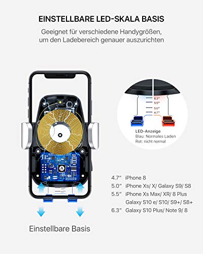 Andobil - Supporto per auto senza fili, con tensione automatica di ventilazione e ventosa, 3 in 1, Qi 10W, supporto per auto per iPhone SE/11/11 Pro/Samsung Galaxy Note10/S20/S10+ (caricatore per auto incluso)