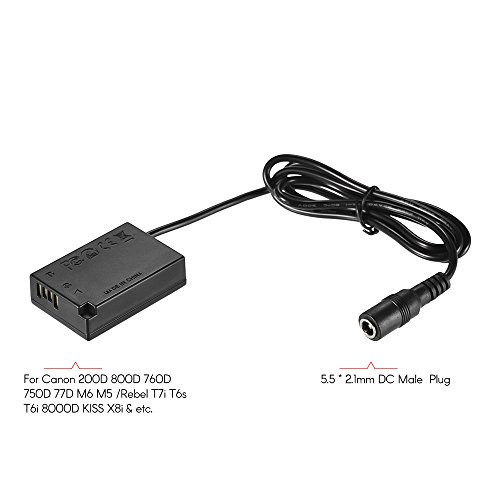 Andoer DR-E18 LP-E17 Dummy - Adattatore batteria con spina DC per Canon 200D 800D 760D 750D 77D M6 M5 / Rebel T7i T6s T6i 8000D KISS X8i