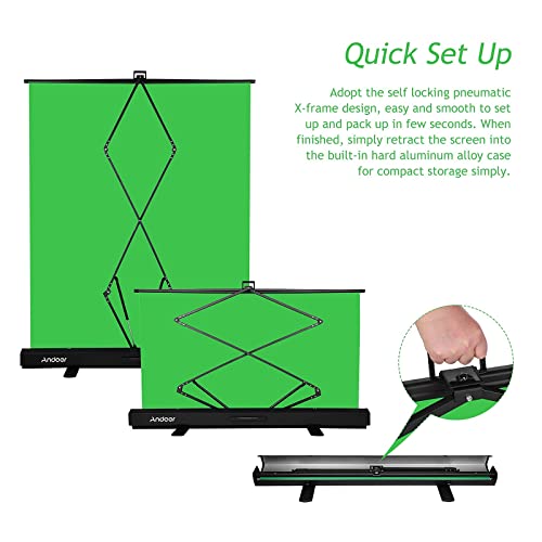 Andoer Sfondo Verde 200 cm Sfondo Chromakey Pieghevole con Telaio con Chiusura Automatica Solido Alloggiamento in Alluminio per Foto Video Giochi di Live Studio