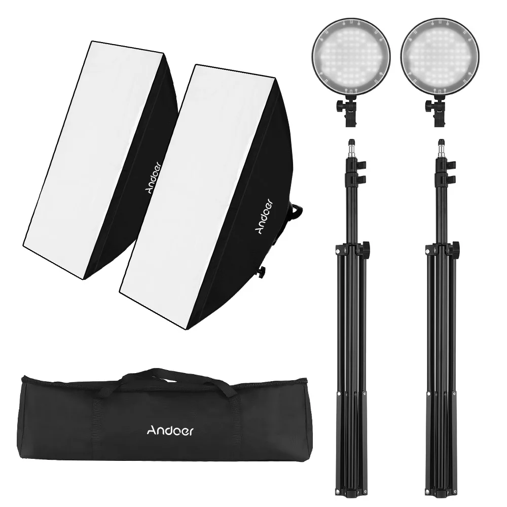Andoer Studio Photography Softbox LED Light Kit Including Softboxes 45W Bi-color Temperature Dimmable LED Lights stand Carry Bag