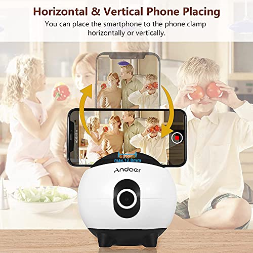 Andoer Supporto Intelligente per Smartphone con Tracciamento Automatico del viso(NIENTE APP RICHIESTA), Smart Selfie Stick Rotazione 360° Automatico Viso Compatibile con tutti i iPhone e Android