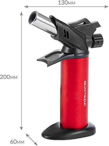 Il cannello, alimentato a gas butano, è facile da riempire e un blocco di sicurezza evita incidenti. Dimensioni: 13 x 6 x 20 cm (lunghezza x larghezza x altezza).