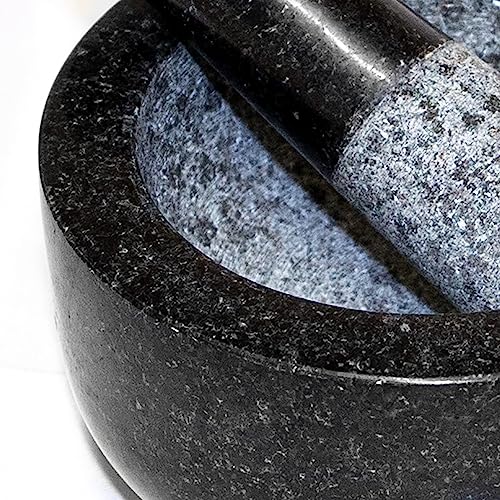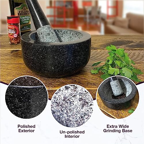 Andrew James - Pestello e mortaio Premium in solido granito con becco per versare facilmente, misura L, ⌀ 15 cm