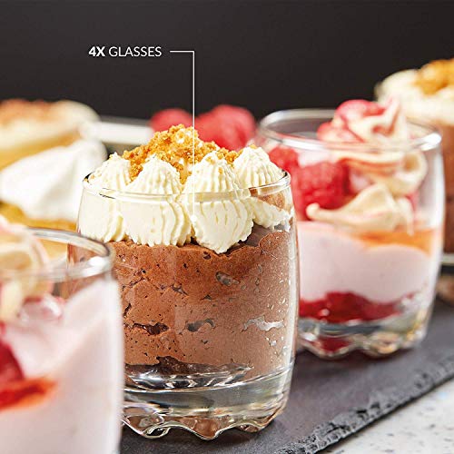Set includes 4 x square glass dishes, 4 x porcelain spoon design dishes, 4 x glasses and 4 x stainless steel spoons - all accessories are dishwasher safe