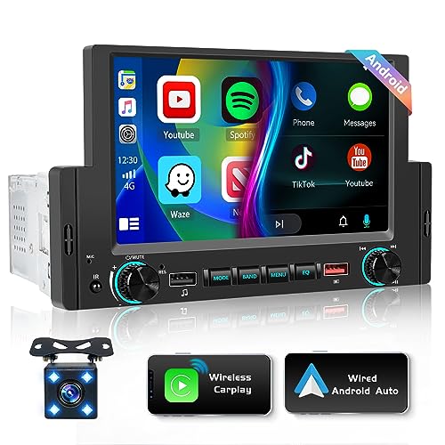 Android 13 Autoradio 1 Din San Fili Apple Carplay Android Auto, 6,2 Pollici Stereo Auto Bluetooth con Schermo GPS Navigazione RDS FM Radio Mirror Link WiFi SWC USB Mic AHD Retrocamera