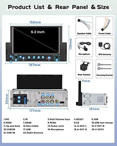 【Sistema Android 13 e Touch Screen da 6,2 Pollici】Questa autoradio a singolo din è dotata dell'ultima risposta di Android 13 e di un sistema di funzionamento fluido, 1G RAM 16G ROM. L'autoradio Android con touch screen capacitivo da 6,2 pollici, può offrire un divertimento visivo e una risposta ultra-sensibile del touch screen.