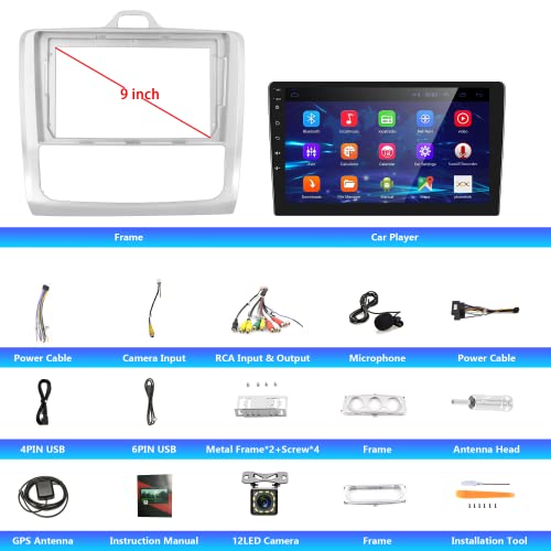 Android 11 Autoradio per Ford Focus Exi MT 2 3 Mk2/Mk3 2004-2011 con Carplay Android Auto 9 pollici Touchscreen Autoradio con GPS Navi WiFi Mirror Link FM/RDS/USB/OBD2/DAB+/DVR + Telecamera Posterior