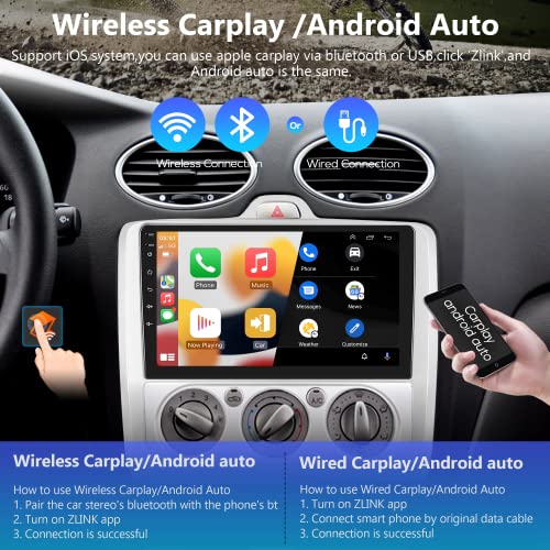 2️⃣【Wireless Carplay/Wireless Android Auto】Puoi scegliere la connessione cablata o wireless a Carplay o Android Auto, connetterti a telefoni cellulari Apple o Android, accedere alla rubrica del cellulare, e-mail, notifiche, navigazione mappa, musica, accedere a video e altre informazioni e realizza il controllo vocale.