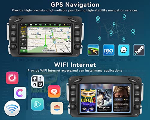 Android 11 Autoradio per Mercedes Benz: Questo andrid autoraio è compatibile con CLK/W209 (1998-2004), E-W210 (1998-20021), clase C/W203 (2000-2005), SLK/W170 (1996-2001), C208/W208 (1996-2008), G/W463 (1998-2004), Viano/W639 (2004-2006), Vito/W639 (2004-2006), Vaneo (2002-2005).