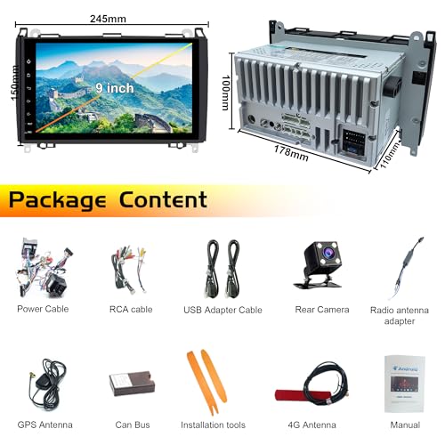 Android 13 autoradio per Mercedes Benz W169 W245 B160 B170 B180 B200 W639 Vito Viano W906 Sprinter [4+64G] Carplay/Android Auto, navigazione GPS, radio FM/AM/RDS, Bluetooth, SWC, WIFI