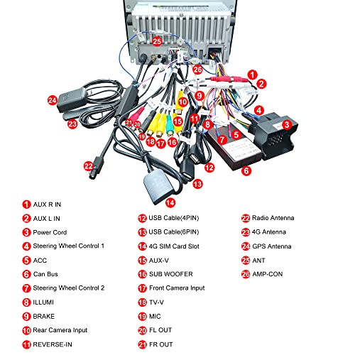 Modulo SIM 4G integrato: Inserendo una scheda SIM nell'apposito slot, è possibile accedere a Internet anche senza connessione wifi. Sul cavo RCA è presente uno slot per la scheda SIM. (Nota: la scheda SIM non è inclusa nell'articolo).