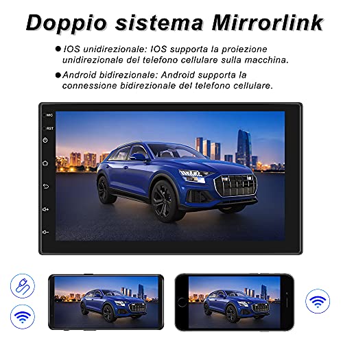 【Navigazione GPS e Mirror Link】 L'stereo 2 din supporta mappe online e offline, dati di navigazione GPS europei, che possono rendere il tuo viaggio di guida più comodo e sicuro. L'autoradio bluetooth Android supporta il doppio sistema di IOS e Android Mirror Link. Android supporta la connessione bidirezionale del telefono cellulare. IOS supporta la proiezione unidirezionale del telefono cellulare sull'auto.