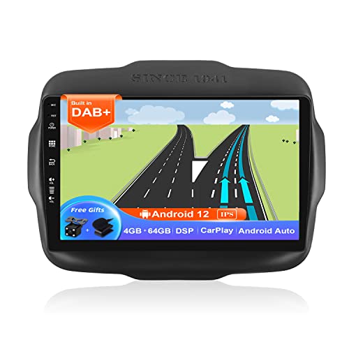 JOYX Android 12 IPS Autoradio Per Jeep Renegade (2015-2018) - Built-in DAB/DSP/Carplay/Android Auto - 4G+64G - LED Camera + MIC - Volante WiFi 360-Camera Fast-Boot 4G BT AHD-Camera - 9 Pollici 2 Din