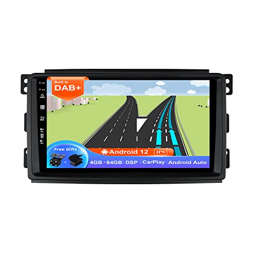JOYX Android 12 IPS Autoradio Per Benz Smart fortwo 451 (2005-2010) - Built-in DAB/DSP/Carplay/Android Auto - 4G+64G - Camera + MIC - Volante WiFi 360-Camera Fast-Boot 4G AHD-Camera - 9 Pollici 2 Din