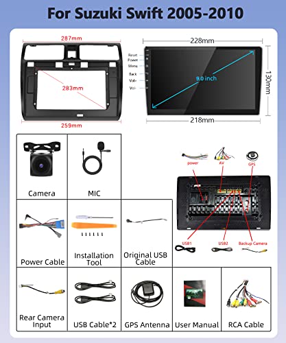 Android 10 Autoradio 2 Din con GPS Navi Vivavoce Bluetooth per Suzuki Swift 2003-2010 10.1 Pollici Autoradio con Mirror Link Bluetooth WiFi FM/RDS USB/OBD2/DAB+/DVR/SWC Telecamera Posteriore Microfono