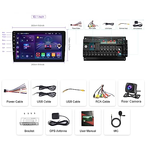 【2G+32G 10.1 Pollici Touchscreen Android 12.0 Autoradio 2 Din 】Questa Autoradio Android 2 Din con schermo touchscreen da 10.1 pollici 1080P ad alta definizione. Memoria 2 GB (RAM) + 32 GB (ROM).Le dimensioni di installazione dell'autoradio universale 2 DIN sono: 180 mm * 102 mm.Supporto del microfono esterno. Doppia interfaccia USB.Supporto dello schermo diviso, due pagine possono essere visualizzate contemporaneamente.Supporto delle funzioni Hi-Fi. Sono supportate le funzioni DAB+,OBD2 e DVR.