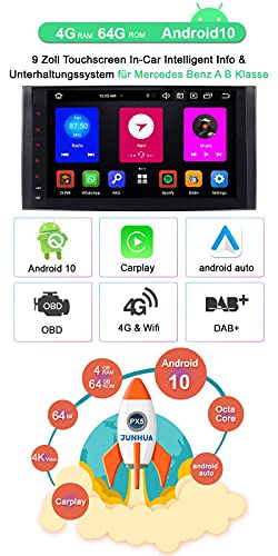 ✪ L'ultimo sistema operativo: Android 10.0, memoria di lavoro (RAM): 4 GB, memoria interna (ROM): 64 GB ROM, processore principale (CPU): processore Octa Core, più memoria per l'installazione di app, risoluzione dello schermo: 1024x600, potenza di uscita: max.4x45W, IC radio con marchio integrato: NXP TEF6686 per una migliore ricezione radio. Con bus CAN integrato e compatibile per il controllo del volante. DAB, dongle 4G, OBD2, fotocamera ecc. Sono opzionali, devi acquistarli separatamente.