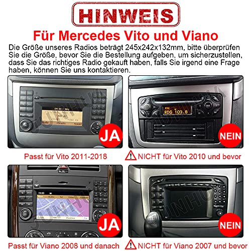 ✪La radio Android 10 è adatta per Mercedes-Benz Classe A W169 (2004-2012)/Mercedes-Benz Classe B W245 (2004-2012)/Mercedes-Benz Viano 2008 e successivi/Vito (W639) (2011-2018) / Mercedes-Benz Sprinter W906 / W209 / W311/W315 / W318 (2006-2016). Nota: elenco compatibile solo come riferimento, confermare la forma e le dimensioni della console centrale prima dell'acquisto.
