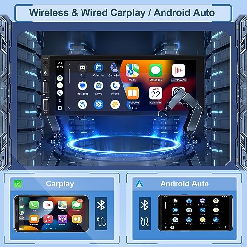 【Autoradio con iOS CarPlay e Android Auto】 Questa autoradio 1 din è compatibile con Apple CarPlay wireless e Android Auto cablato e consente un eccellente controllo vocale e la sincronizzazione dei vostri smartphone, e può accedere alle funzioni del telefono come musica, navigazione con accesso al GPS, chiamate, messaggi, ecc.