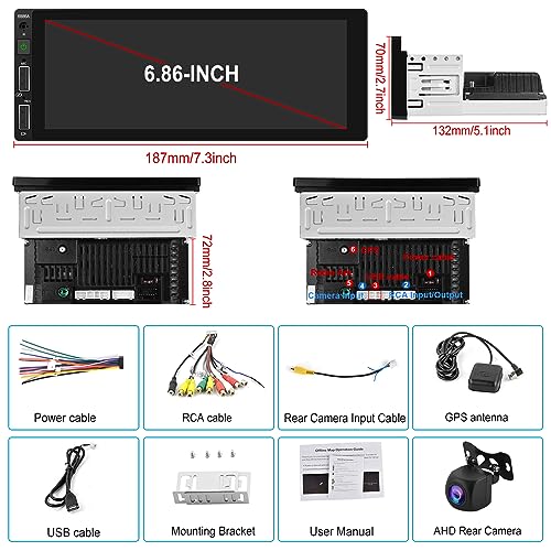 【Android 1 Din Autoradio 2GB 32GB】 Touch screen HD da 6,86 pollici, area di visualizzazione touch, funzionamento sensibile. Pienamente compatibile con gli attuali formati video mainstream, supporta la qualità dell'immagine HD, l'uscita del canale anteriore ripristina perfettamente la qualità del suono, rendendo le prestazioni del suono più. 2 GB di RAM + 32 GB di memoria ROM, l'ultimo sistema Android, rendendo le prestazioni della radio Android a singolo din ancora migliori