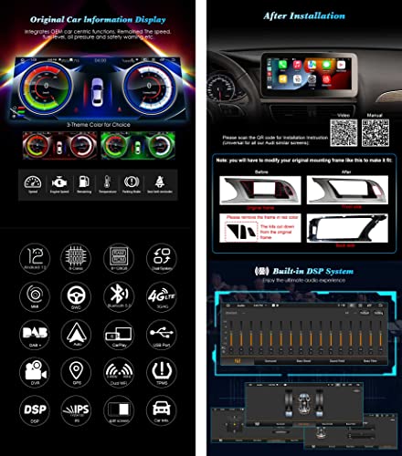 【Android 12 + 4 GB di RAM + 64 GB di ROM】 L'autoradio ha un potente processore Octa-Core, architettura CPU 8 * A53 a 64 bit da 1,8 GHz, i punteggi di riferimento superano i 110.000. Adotta il nuovissimo schermo IPS super wide ultra HD da 10,25 pollici con risoluzione: 1280 * 480 pixel. Supporta la visualizzazione delle informazioni sull'auto originale e integra le funzioni incentrate sull'auto OEM. Ottima sostituzione e aggiornamento per il tuo schermo Audi originale, con più funzioni Android.
